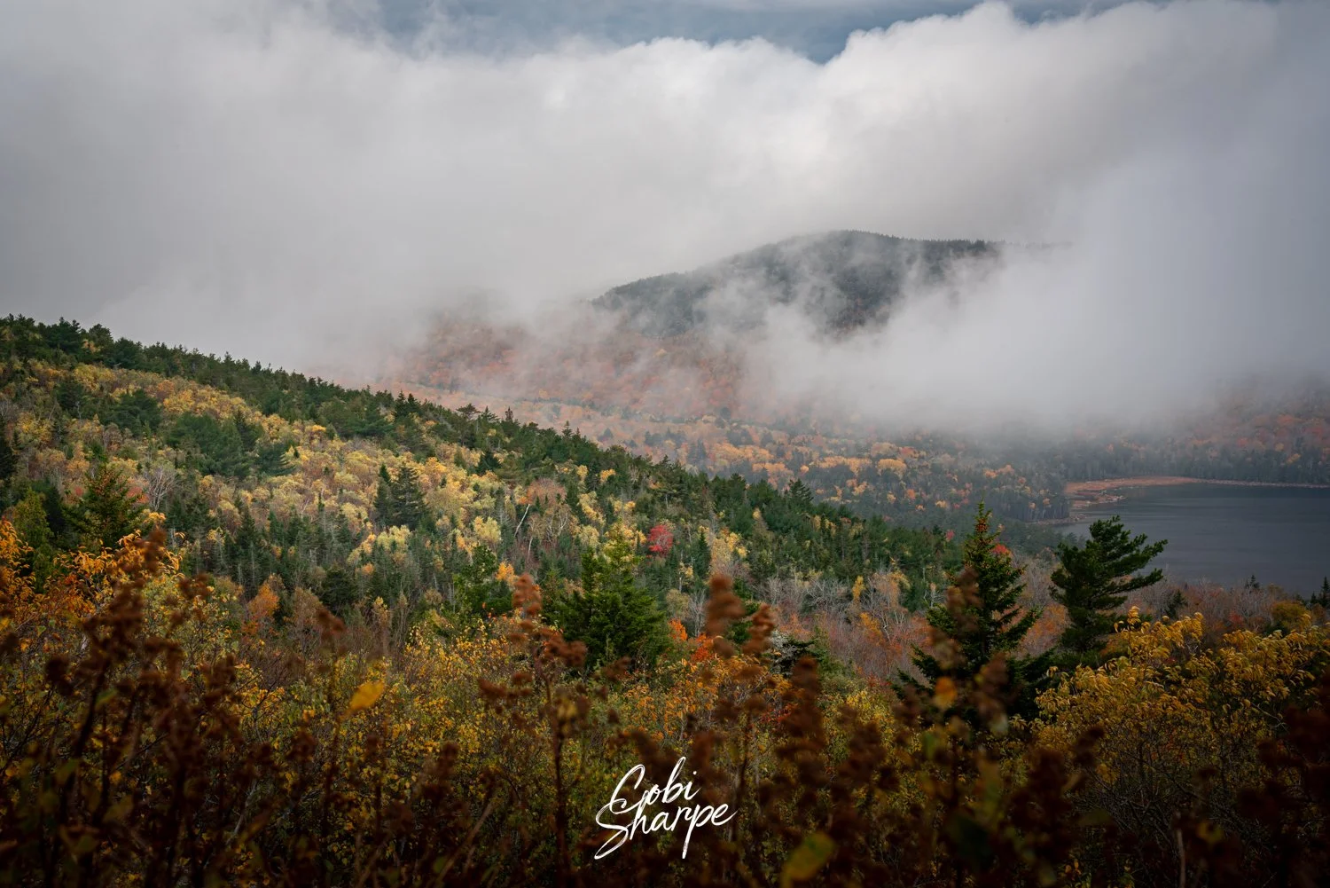 View fullsize I didn't get a clear view on top of Cadillac Mountain at Acadia National Park, but I did appreciate being in the clouds, and the glimpses here and there of my surroundings.