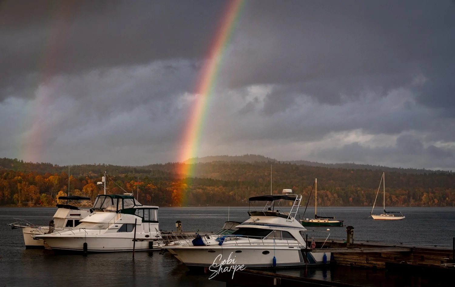 #yourshot #cangeo #lakechamplain #vermont #newyorkstate #landscapephotography #doublerainbow #docklife #anchored #rainbowmagic #cloudsc