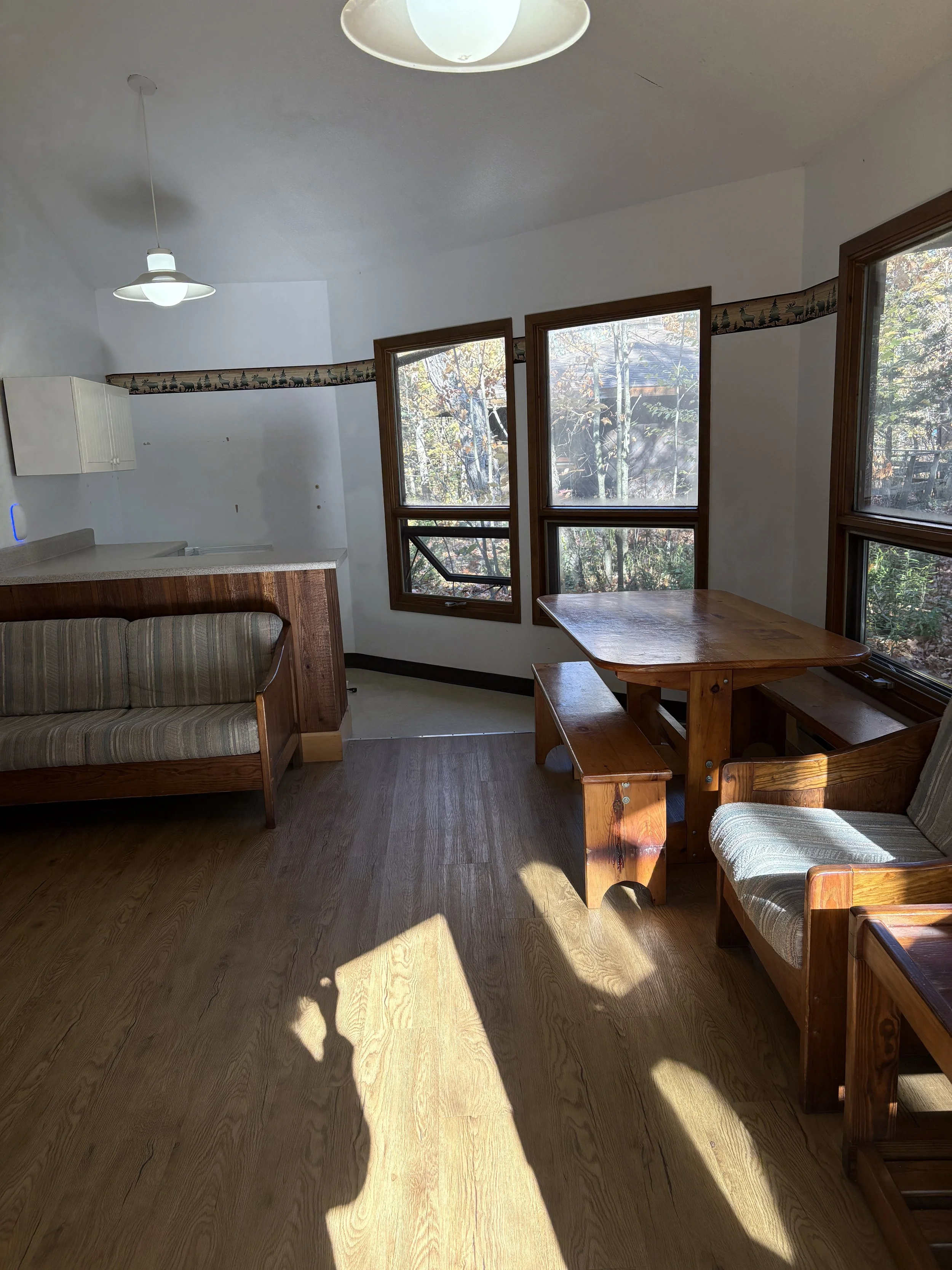 Cozy on-site cabins at Queen's University Biological Station, Elbow Lake. Electricity, heat, double bed + bunk bed per room. Shared cabins (2–3 women per cabin for comfortable occupancy).