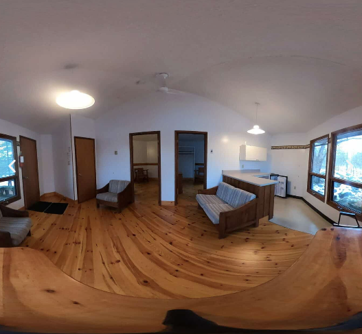 Each cabin has two bedrooms, one with a double bed, and the other with a single bed bunked over a double bed. Overnight guests are expected to bring their own linens/sleeping bag, pillow, towel, and personal toiletries.